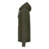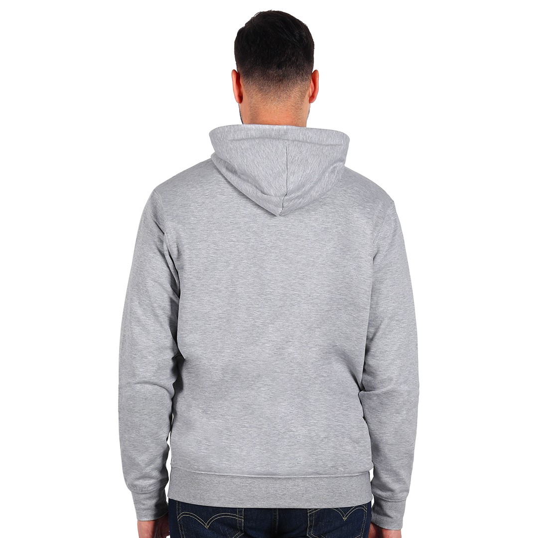 Dukserica od organskog pamuka, ima prednji džep, učkur u kapuljači u boji dukserice, elastične ranfle na rukavima i dnu, dodatni štepovi na ramenima, rukavima i dnu, okovratnik ojačan trakom
