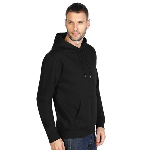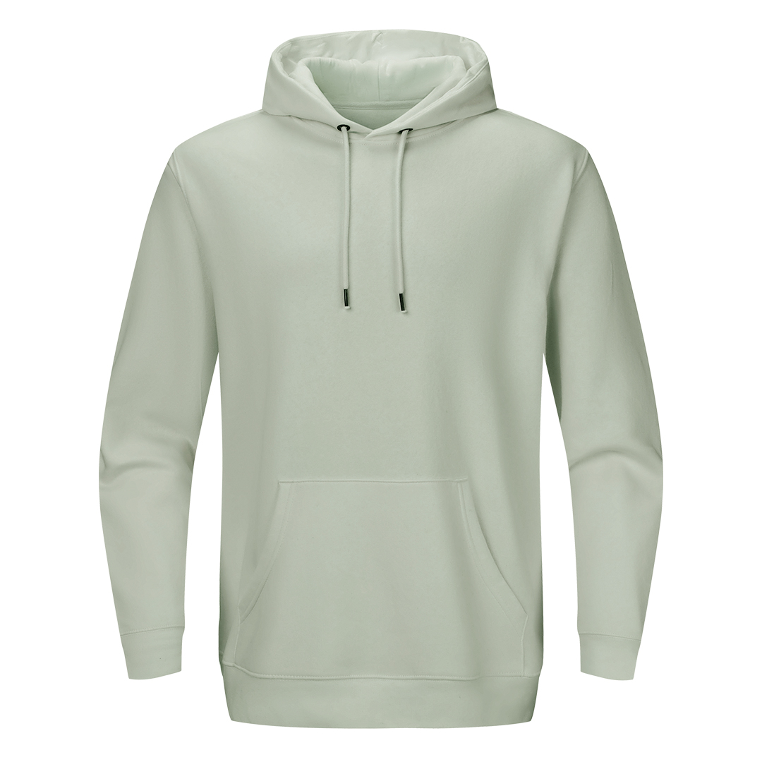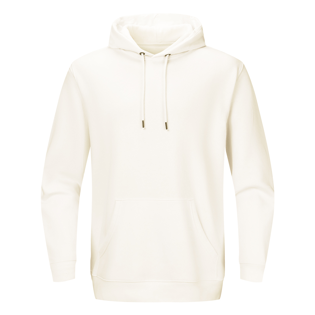 Dukserica od organskog pamuka, prednji džep, učkur u kapuljači u boji dukserice, elastične ranfle na rukavima i dnu, dodatni štepovi na ramenima, rukavima i dnu, okovratnik ojačan trakom