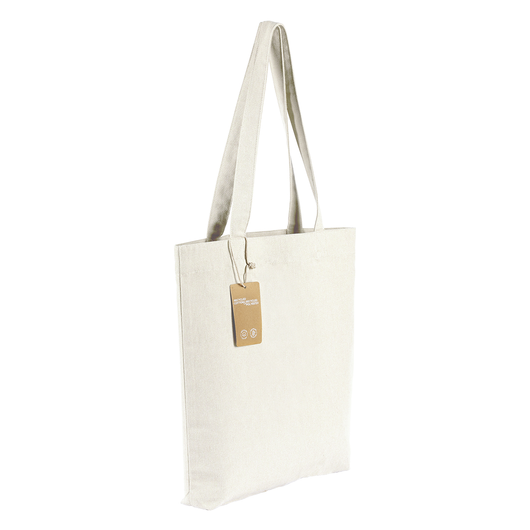 Pamučna torba • Sirovinski sastav: 80% reciklirani pamuk, 20% reciklirani poliester • Gramatura: 300 g/m2 • Čvrsta i kompaktna struktura • Duge ručke za nošenje na ramenu • Eco koncept sa hangtag etiketom • Vezena etiketa za isticanje održivosti • GRS sertifikat • OEKO-TEX sertifikat • FAIRTRADE sertifikat