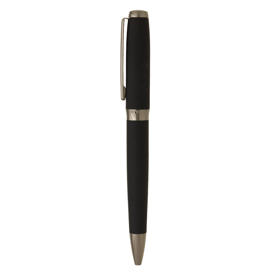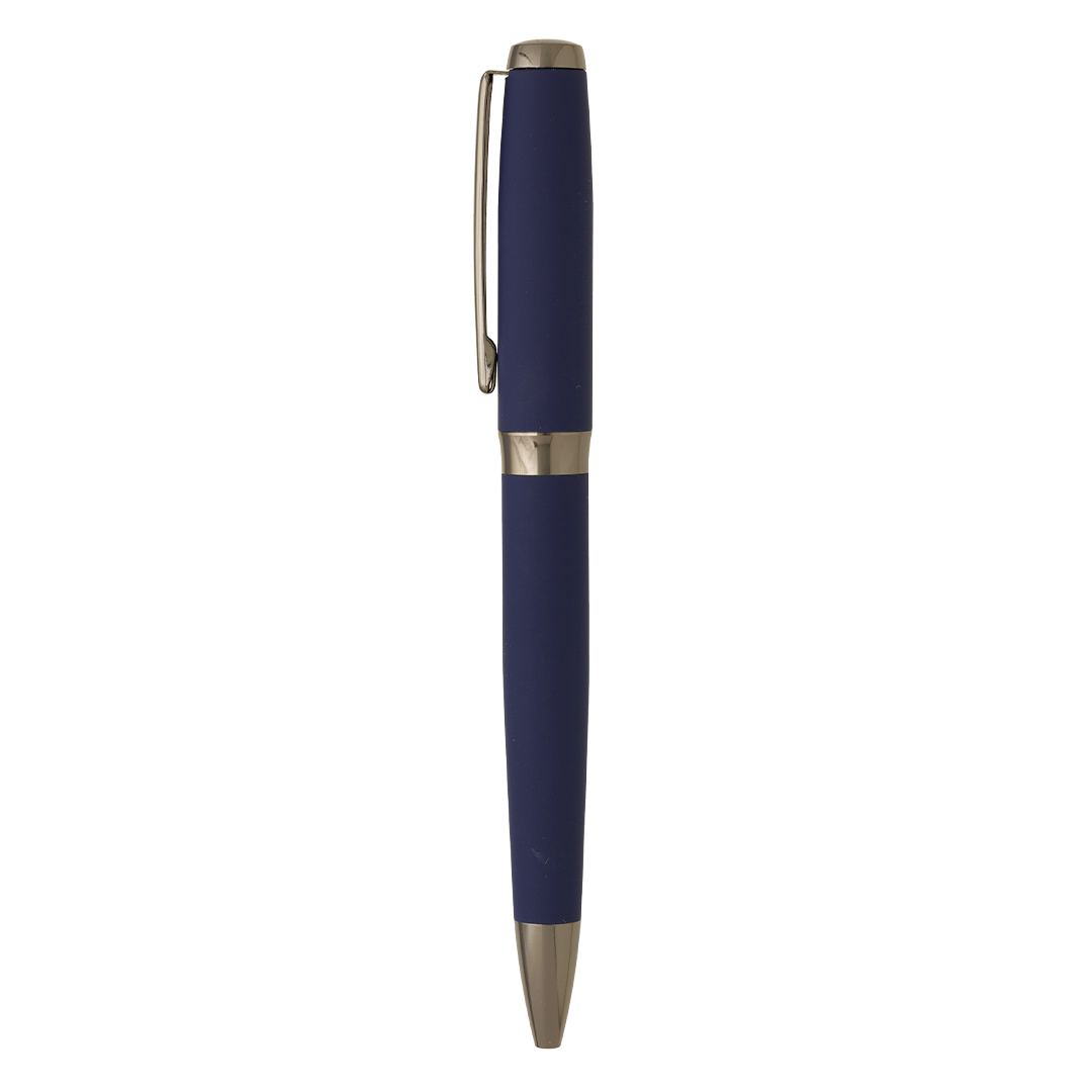 Hemijska olovka u setu • Materijal: mesing • Twist mehanizam • TC kuglica 0,7 mm • Plavo mastilo • Soft touch telo • Sjajni tamno-metalni delovi • Papirna poklon tuba • Idealna za poslovne poklone i promotivnu upotrebu