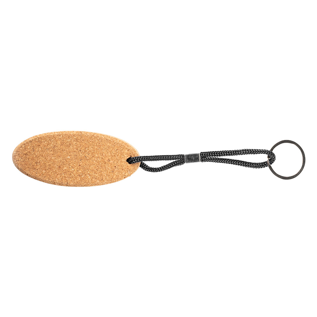 Izuzetno ekonomičan privezak za ključeve izrađen od plute, koja mu daje prirodan i ekološki karakter. Ovalni oblik priveska dopunjen je pletenom petljom u boji koja povezuje telo priveska sa prstenom, čineći ga jednostavnim, laganim i pogodnim za promotivne kampanje sa naglaskom na prirodne materijale.