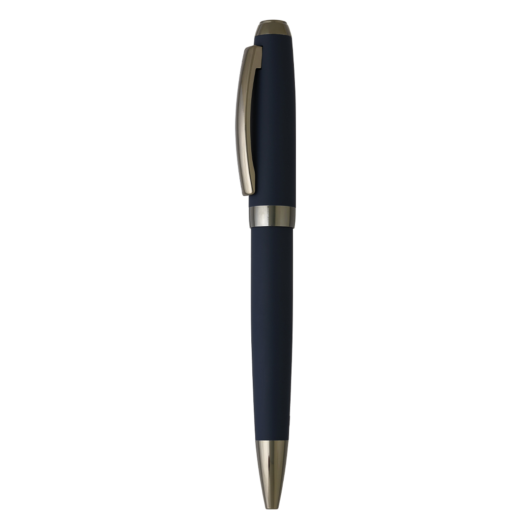 Hemijska olovka u setu • Materijal: mesing • Twist mehanizam • TC kuglica 0,7 mm • Plavo mastilo • Soft touch telo sa hromiranom podlogom gornjeg dela • Sjajni tamno-metalni delovi • Luksuzna poklon kutija • Idealna za poslovne poklone i promotivnu upotrebu