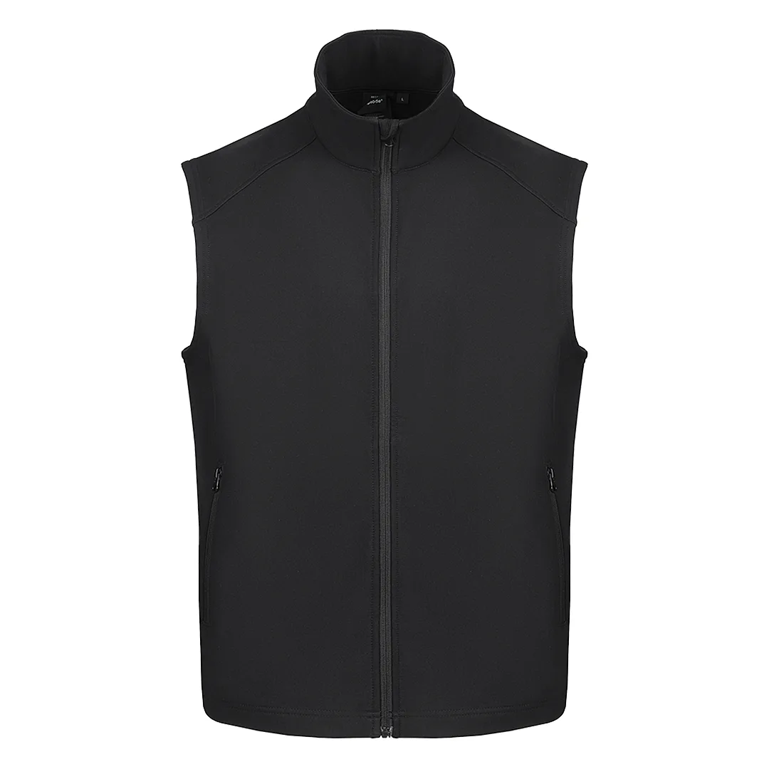 Spoljašnji sloj izrađen je od softshell materijala (95% poliester / 5% elastin) sa TPU membranom, dok unutrašnja postava od polara (100% poliester) doprinosi dodatnoj toplini i komforu. Gramatura materijala iznosi 280 g/m2. Prsluk ima dva prednja džepa sa rajsferšlusom, dva unutrašnja džepa i pun prednji rajsferšlus uz visoku kragnu za dodatnu zaštitu vrata.
