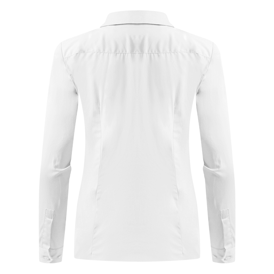 Ženska košulja, klasičan, blago strukirani kroj, dva ušitka napred, dva pozadi, džep sa leve strane grudi, sedam dugmadi napred, dva na manžetnama, rezervna dugmad, sva dugmad u boji košulje, lako peglanje i održavanje