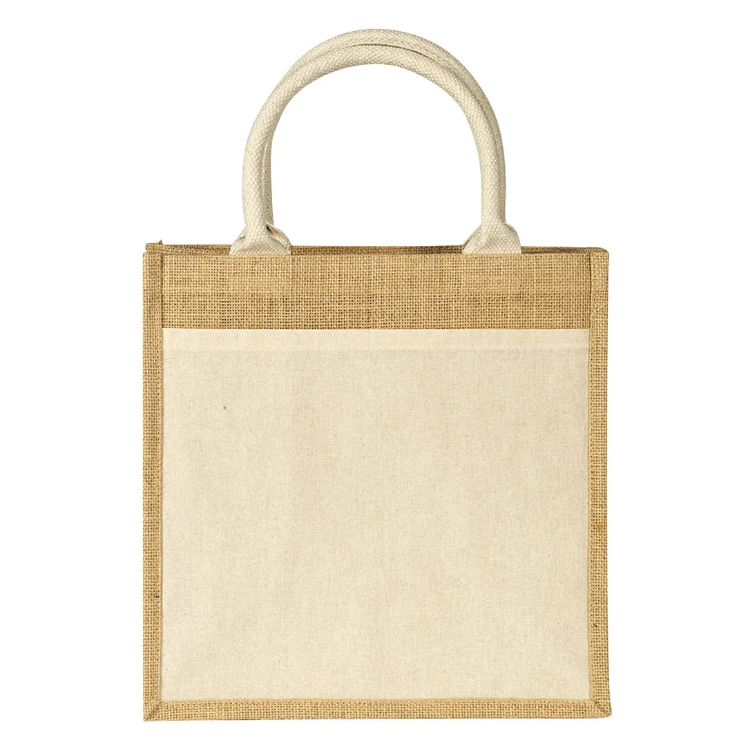Torba kompaktnog formata • Juta • Pamučni prednji džep pogodan za štampu • Kontrast jute i pamuka • Pamučne ručke • Idealna za poklon pakovanja i događaje • OEKO-TEX sertifikat • FAIRTRADE sertifikat