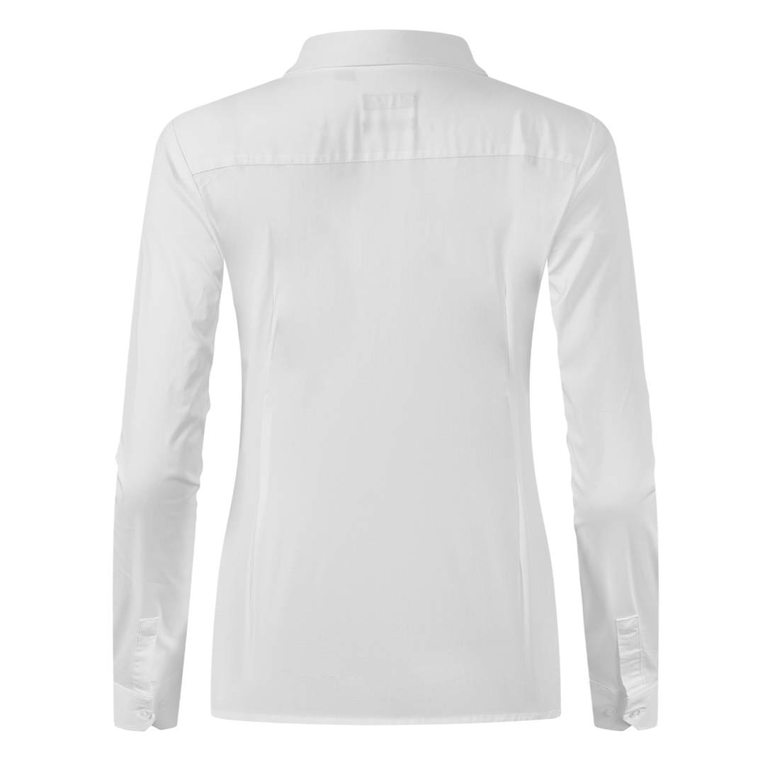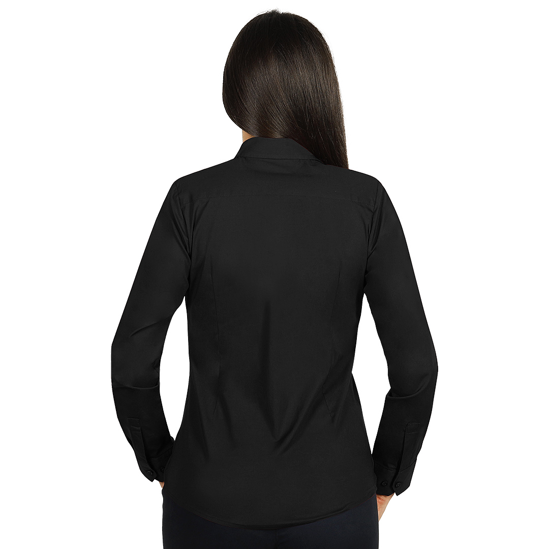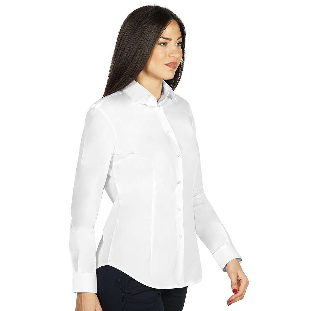 Ženska košulja dugih rukava • Strukirani kroj • Sirovinski sastav: 97% pamuk, 3% elastin (puplin) • Gramatura 140 g/m2 • Udobna i blago elastična • Lako održavanje i peglanje • Rastegljiva tkanina u dva pravca • Ušitci za bolji fit (4 napred, 2 pozadi) • Sedam dugmadi napred • Dva dugmeta na manžetnama • Rezervna dugmad uključena • Dugmad u boji tkanine • Pogodna za brendiranje • Dostupna i u muškoj verziji