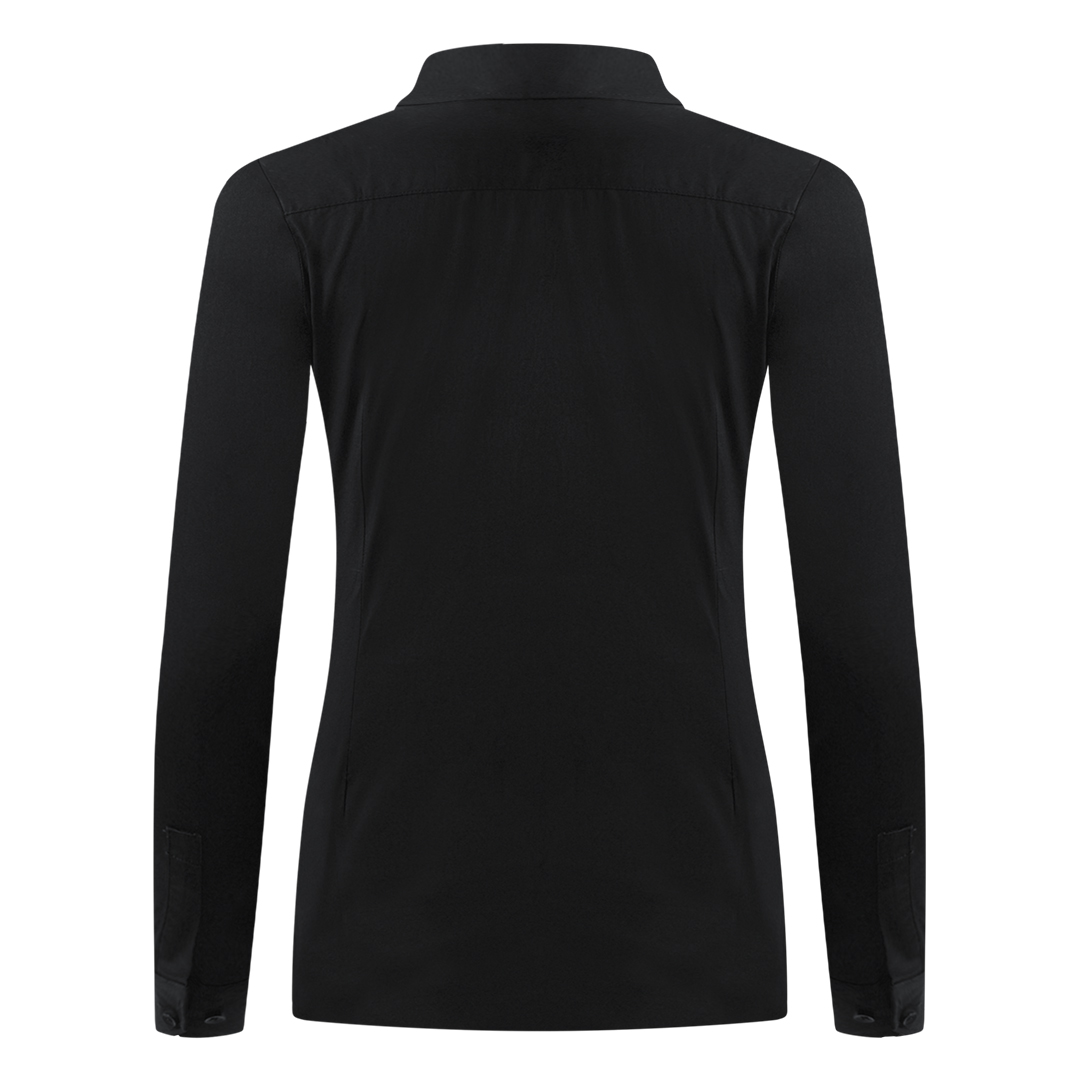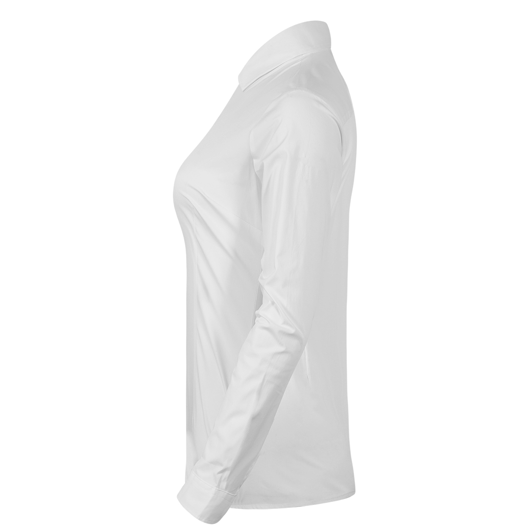 Ženska košulja dugih rukava strukiranog kroja, dizajnirana za poslovni i smart-casual stil. Izrađena je od puplina sa elastinom (97% pamuk, 3% elastin, 140 g/m2), što pruža udobnost, lako održavanje i jednostavno peglanje.