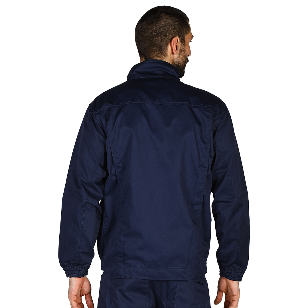 Radna bluza • Tkanina: keper • Sirovinski sastav: 65% poliester, 35% pamuk • Gramatura: 240 g/m² • Visoka kragna • Preklop sa čičak trakama preko rajsferšlusa • Dva džepa na grudima i dva prednja džepa • Falte na leđima • Elastične ranfle na rukavima i dnu • SAB rajsferšlusi • Unutrašnja etiketa za lične podatke