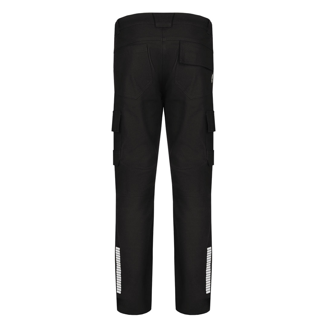 Pantalone imaju dva prednja džepa, dva zadnja džepa i dva bočna džepa, omogućavajući praktičan i organizovan raspored alata i sitne opreme. Na prednjem delu se nalazi D-prsten za kačenje alata ili dodatne opreme. U predelu kolena predviđen je prostor za umetanje štitnika za kolena, čime se obezbeđuje dodatna zaštita pri radu u klečećem položaju. Reflektivna štampa na nogavicama poboljšava uočljivost u uslovima slabije vidljivosti. Model je opremljen YKK rajsferšlusima, koji obezbeđuju pouzdano i dugotrajno korišćenje.
