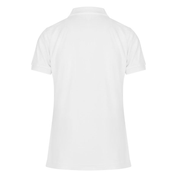 Ženska polo majica, 180 g/m2, blago strukirana, šivena sa strane, dupli štep na dnu, ranfle oko rukava, dva dugmeta u boji majice, rezervno dugme, ojačana trakom duž vrata i dodatnim štepom duž ramena
