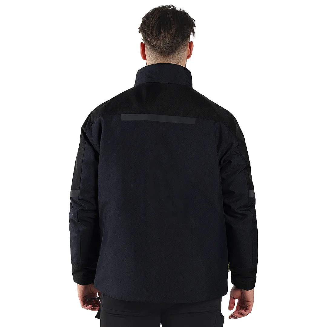 Jakna ima visoku kragnu, elastične ranfle na rukavima sa čičak podešavanjem, kao i funkcionalan raspored džepova: tri džepa na grudima i dva prednja džepa dostupna i pri radu u pokretu. Unutrašnji džep i poseban unutrašnji džep za tablet pogodni su za dokumentaciju i manju elektroniku, a diskretni reflektivni detalji poboljšavaju uočljivost u uslovima slabije vidljivosti.