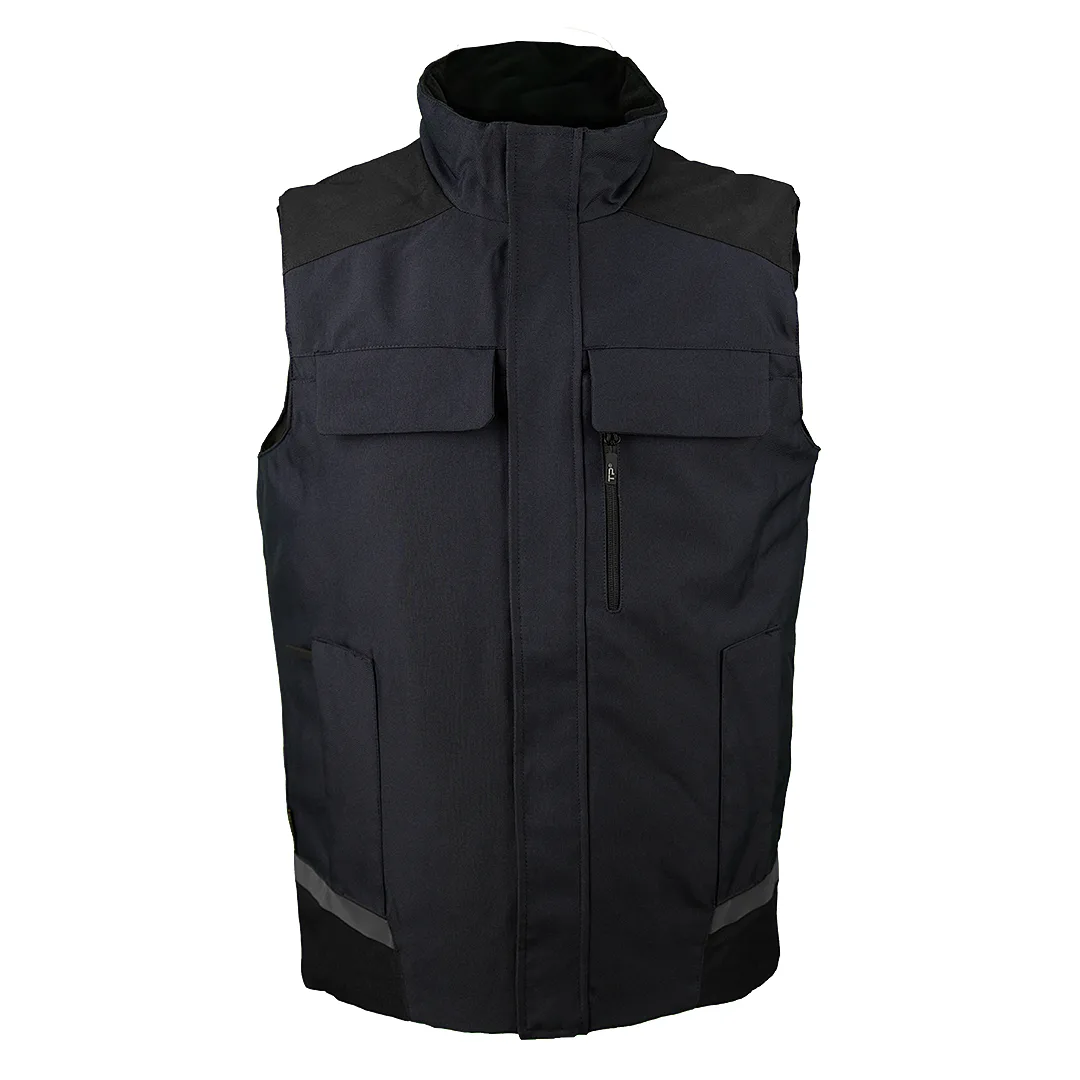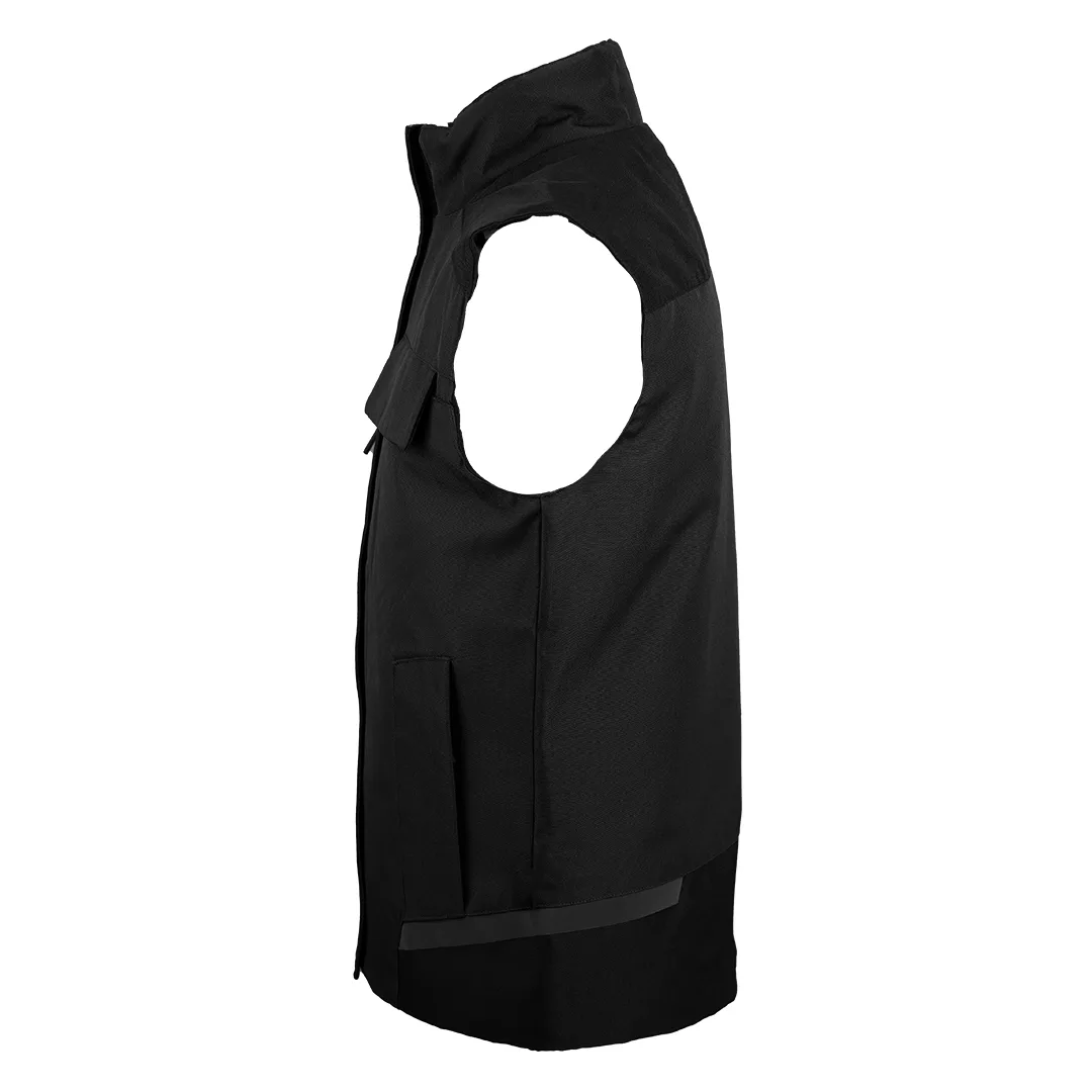 Radni prsluk • Spoljašnji materijal: poliester sa PU premazom • Postava: 100% poliester • Visoka kragna • Zatvaranje: rajsferšlus • Džepovi: 3 na grudima + 2 prednja • Unutrašnji džep za tablet / veću opremu • Diskretni reflektivni detalji • Pogodan za industriju, logistiku, servisne i tehničke poslove, terenski rad