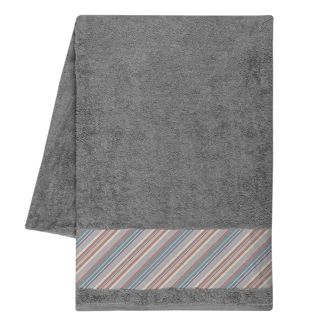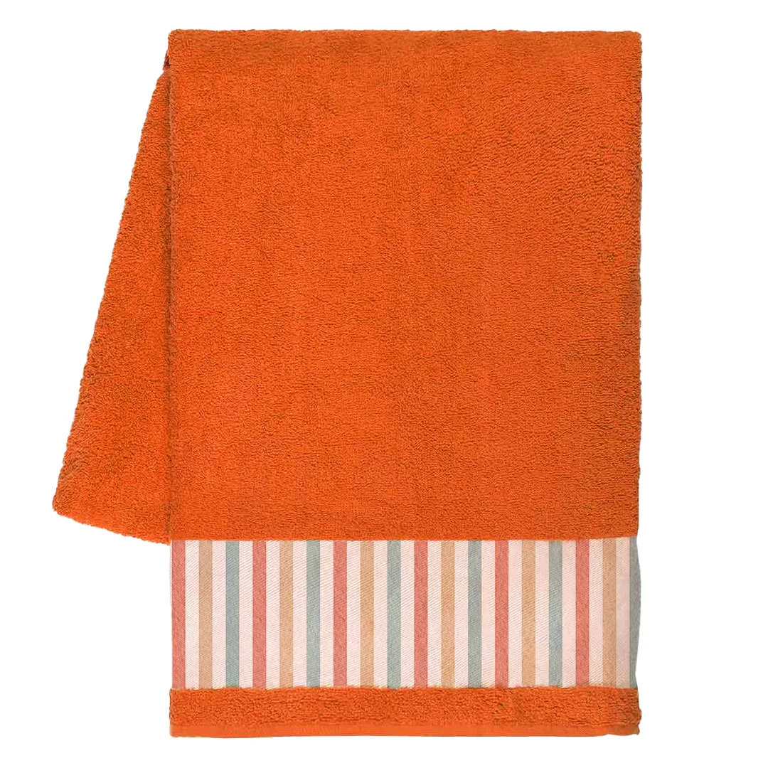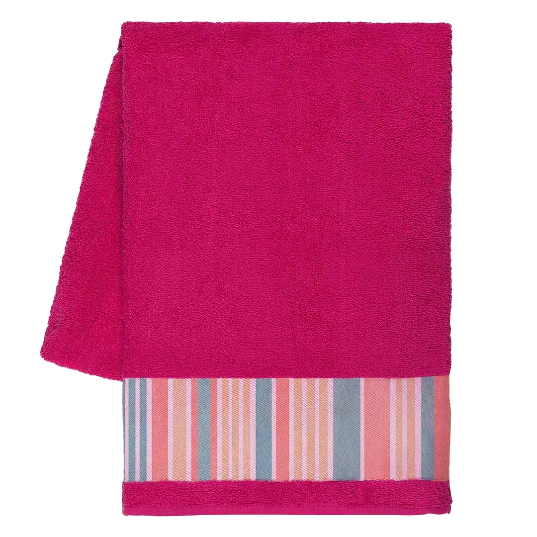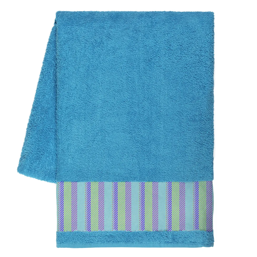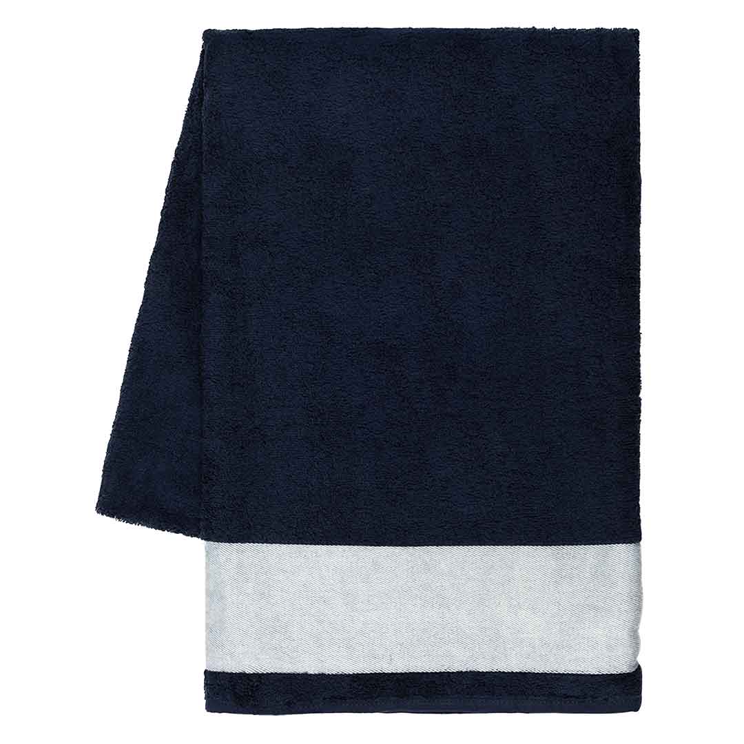 Model je dizajniran sa 10 cm širokom poliesterskom bordurom za brendiranje (print zona 10 × 90 cm), što ga čini idealnim za sublimacionu štampu i izradu upečatljivih personalizovanih motiva. Praktična pamučna zakačka omogućava lako kačenje i sušenje. Savršen izbor za plažu, bazen, wellness centre i letnje promotivne kampanje. Dostupan u širokoj paleti atraktivnih boja.