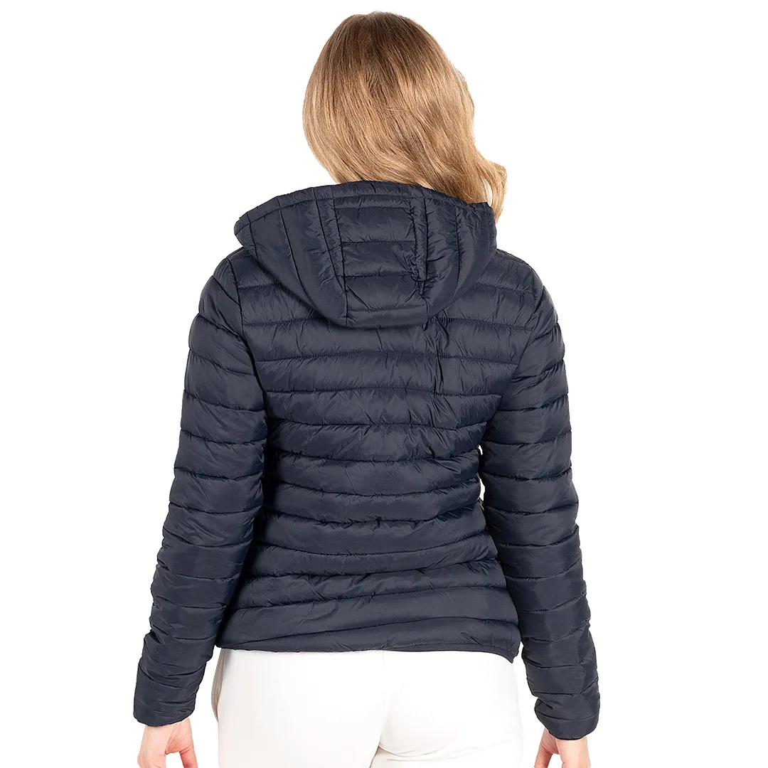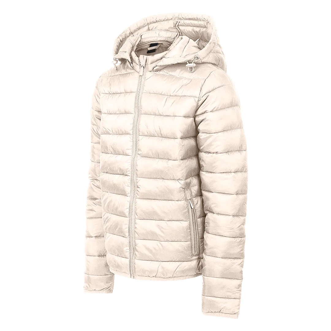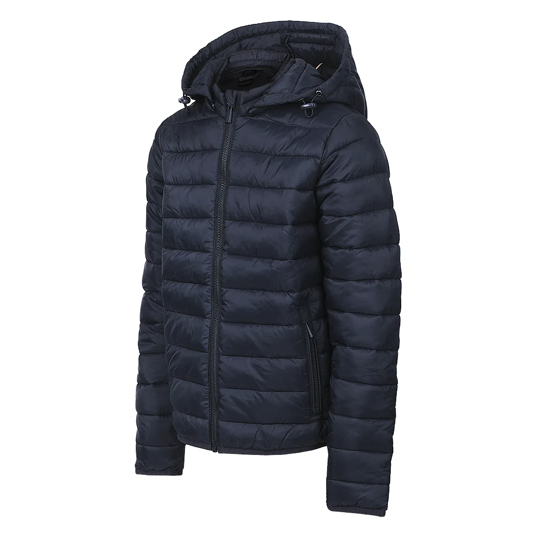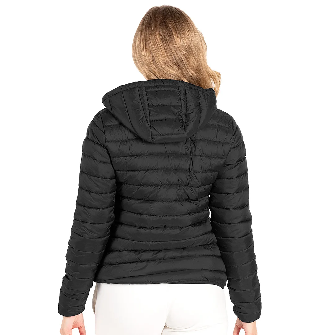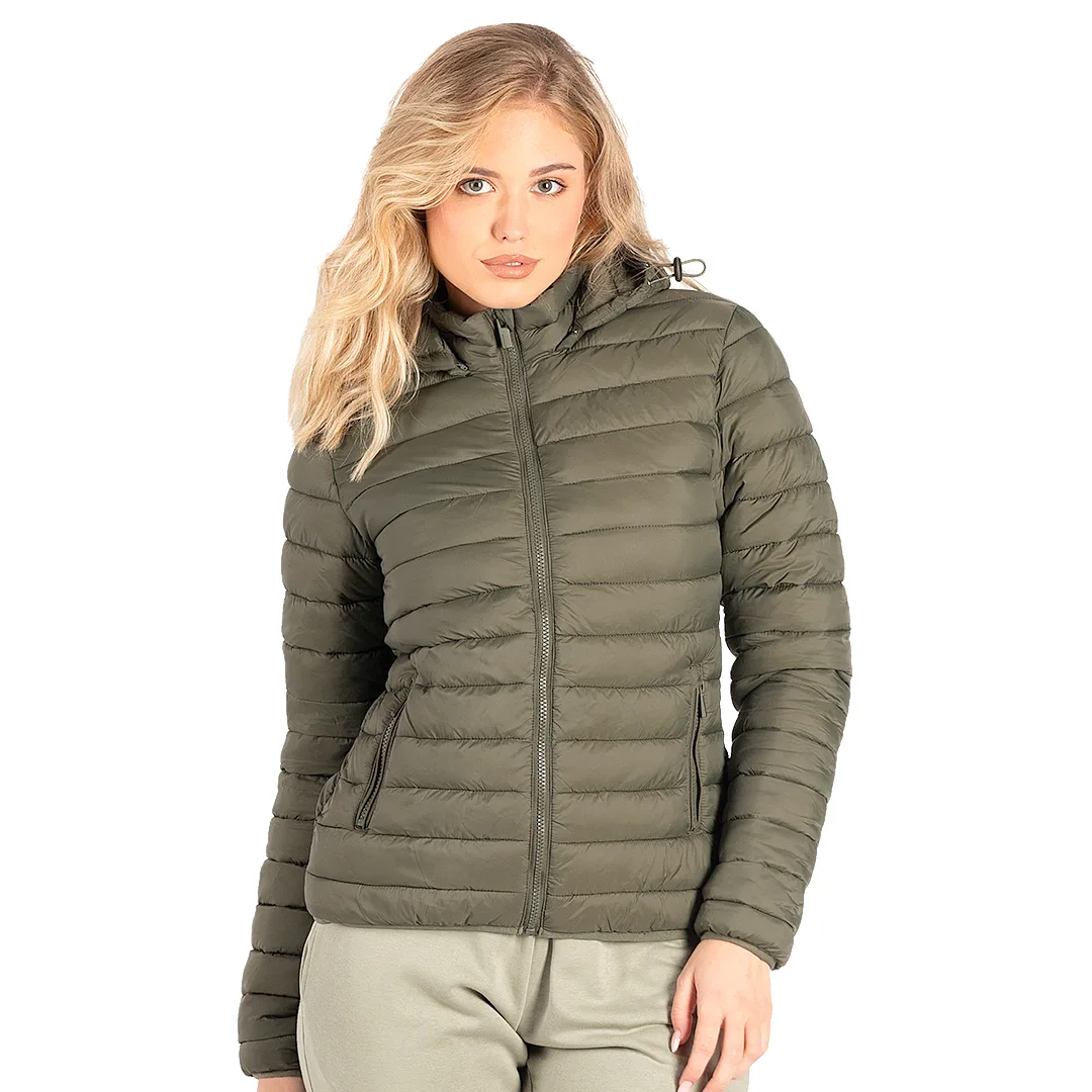 Ženska štepana jakna • Kapuljača • Lagana konstrukcija i punjenje • Dobra toplotna zaštita • Dva prednja džepa • Elastični paspuli oko ramena i džepova • Vrećica za pakovanje • Pogodna za štampu i personalizaciju • SAB rajsferšlusi • Dostupna i u muškoj i u dečijoj verziji