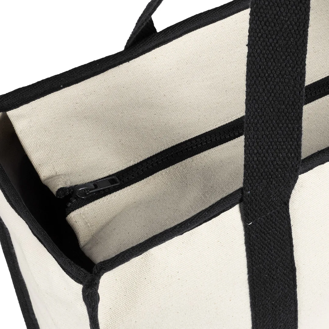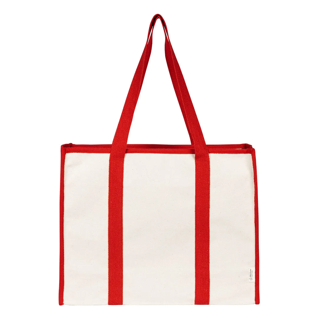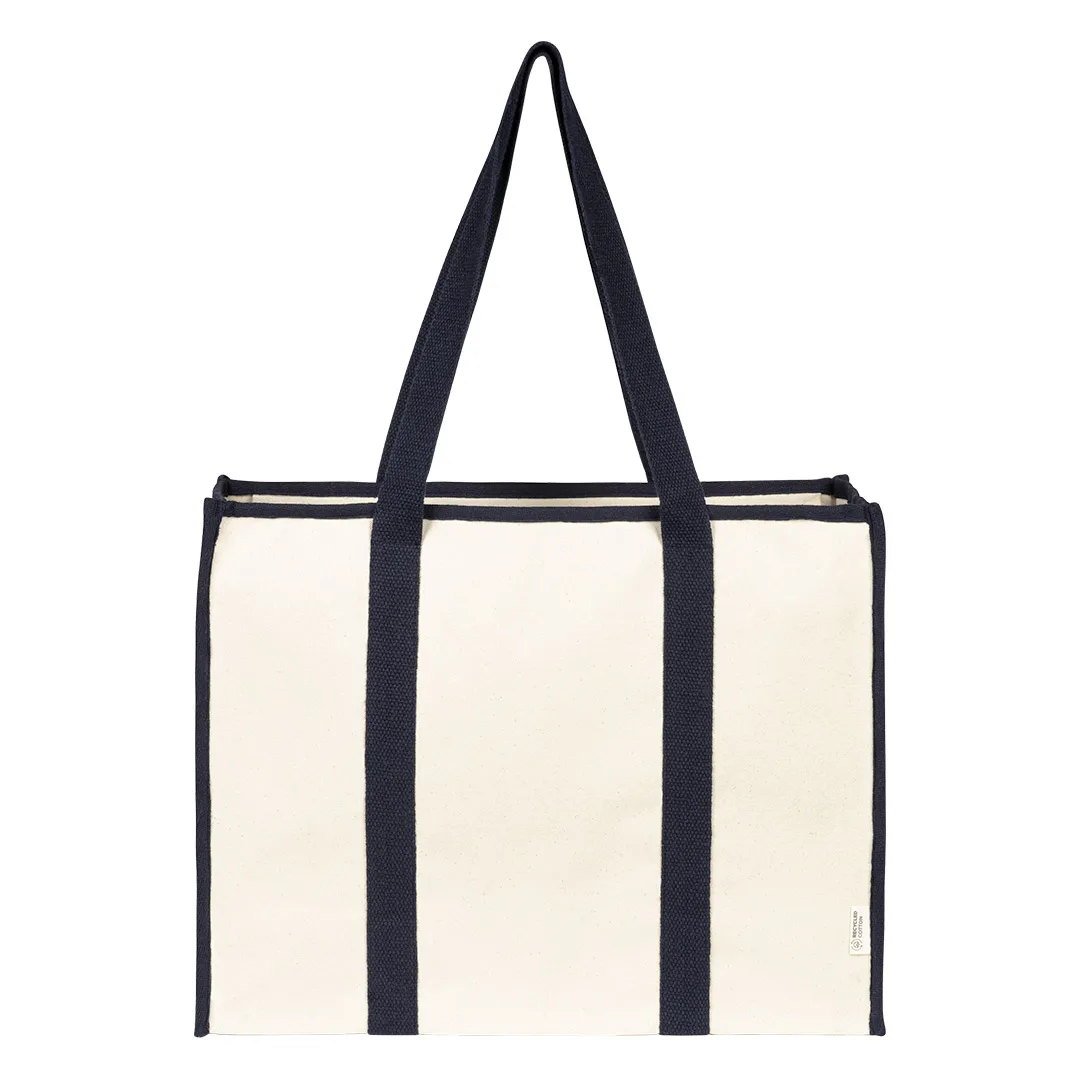 Premium torba • Sirovinski sastav: 80% reciklirani pamuk, 20% reciklirani poliester • Gramatura: 450 g/m2 • Ojačana konstrukcija za veća opterećenja • Ručke prošivene oko celog tela torbe • Kontrastni detalji za moderan izgled • Zatvaranje rajsferšlusom • Unutrašnji džep • Pogodna za premium događaje i promotivne kampanje • GRS sertifikat • OEKO-TEX sertifikat • FAIRTRADE sertifik