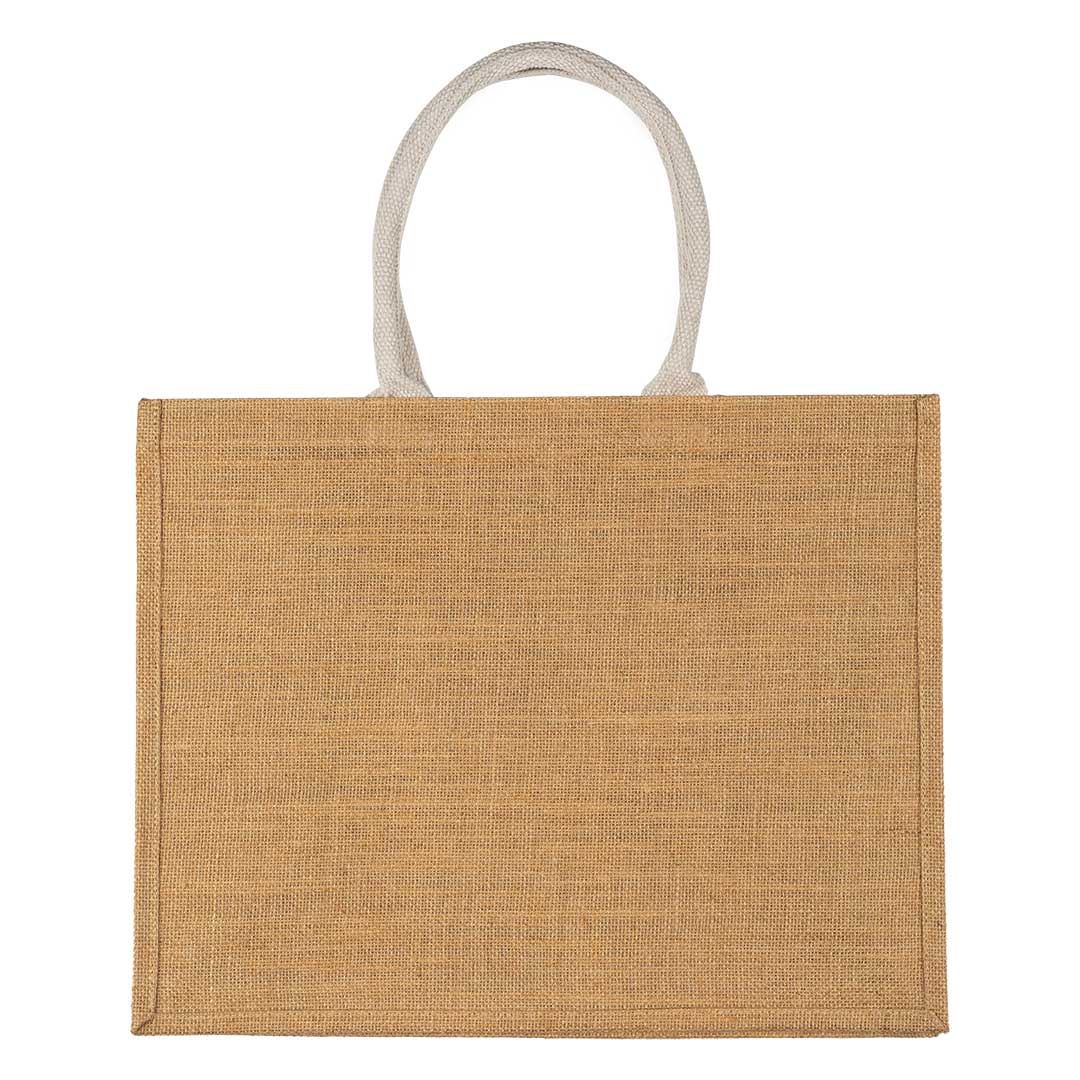 Velika torba od jute • Pamučne ručke • Širok format i dobra zapremina • Pogodna za lifestyle i turističke kampanje • Površina pogodna za brendiranje • OEKO-TEX sertifikat • FAIRTRADE sertifikat