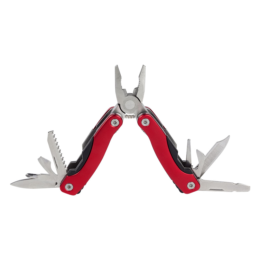 Materijal: nerđajući čelik (elementi), aluminijum (drška) • Funkcije: klešta, nož, testerica, otvarač za flaše, 2 ravna odvijača, krstasti odvijač, turpija, otvarač za konzerve • Poklon pakovanje