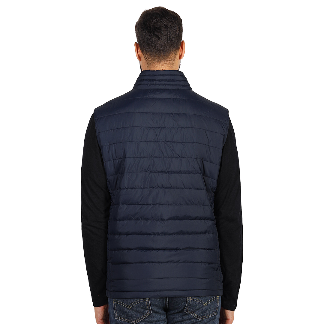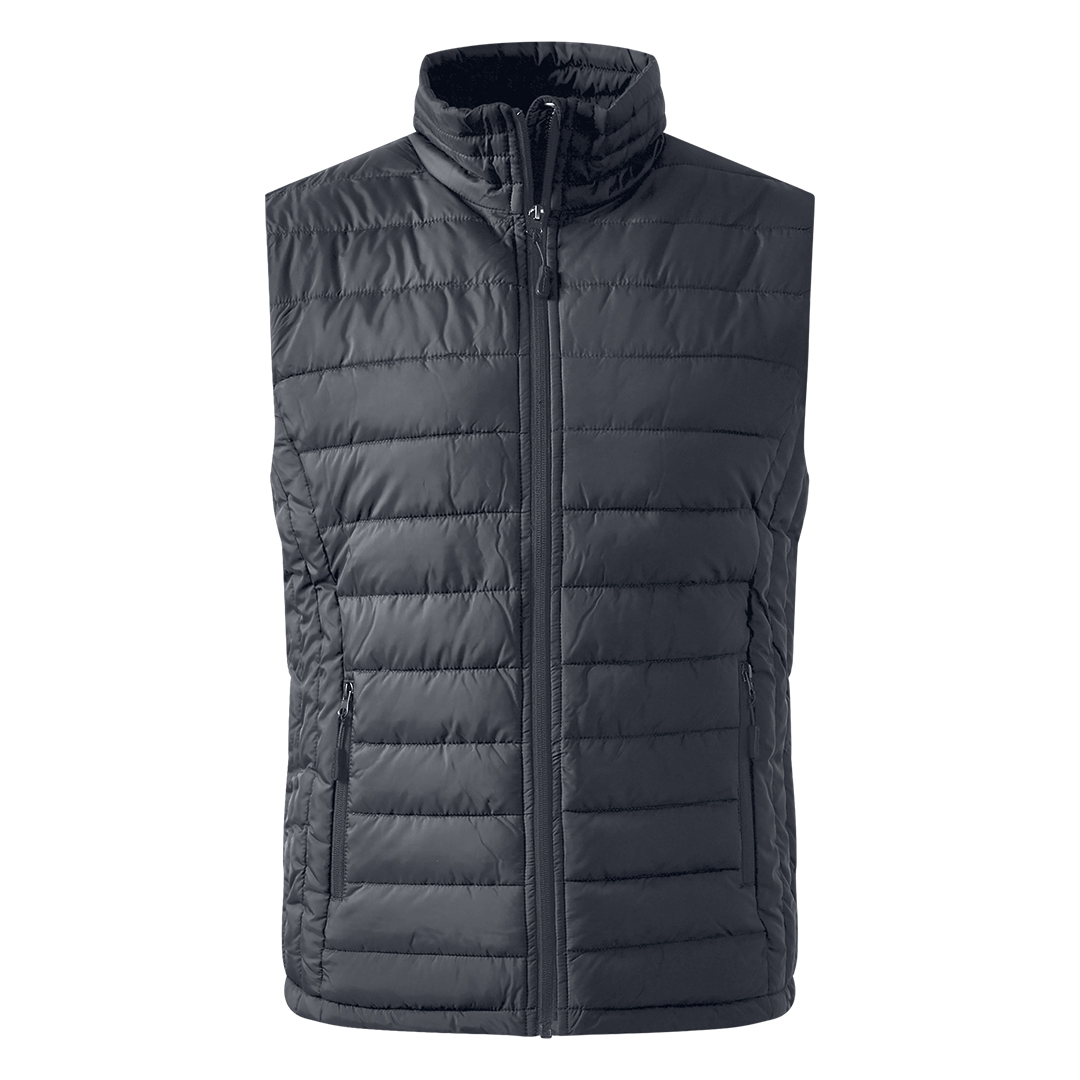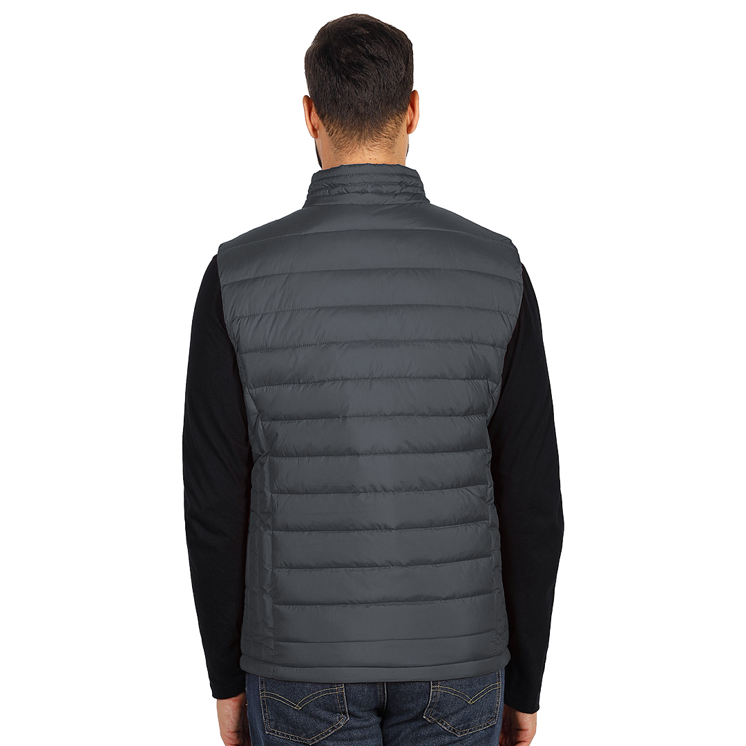 Prsluk sa laganim punjenjem, štepani, visoka kragna, dva prednja džepa sa rajsferšlusom i jedan unutrašnji džep, skriveni unutrašnji rajsferšlus na leđima za lakši pristup prilikom štampanja