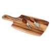 Materijal: drvo (daska), nerđajući čelik (noževi) • Sadržaj seta: drvena daska i 2 noža za tvrde i meke sireve • Namena: sečenje i serviranje sireva i delikatesa • Poklon pakovanje