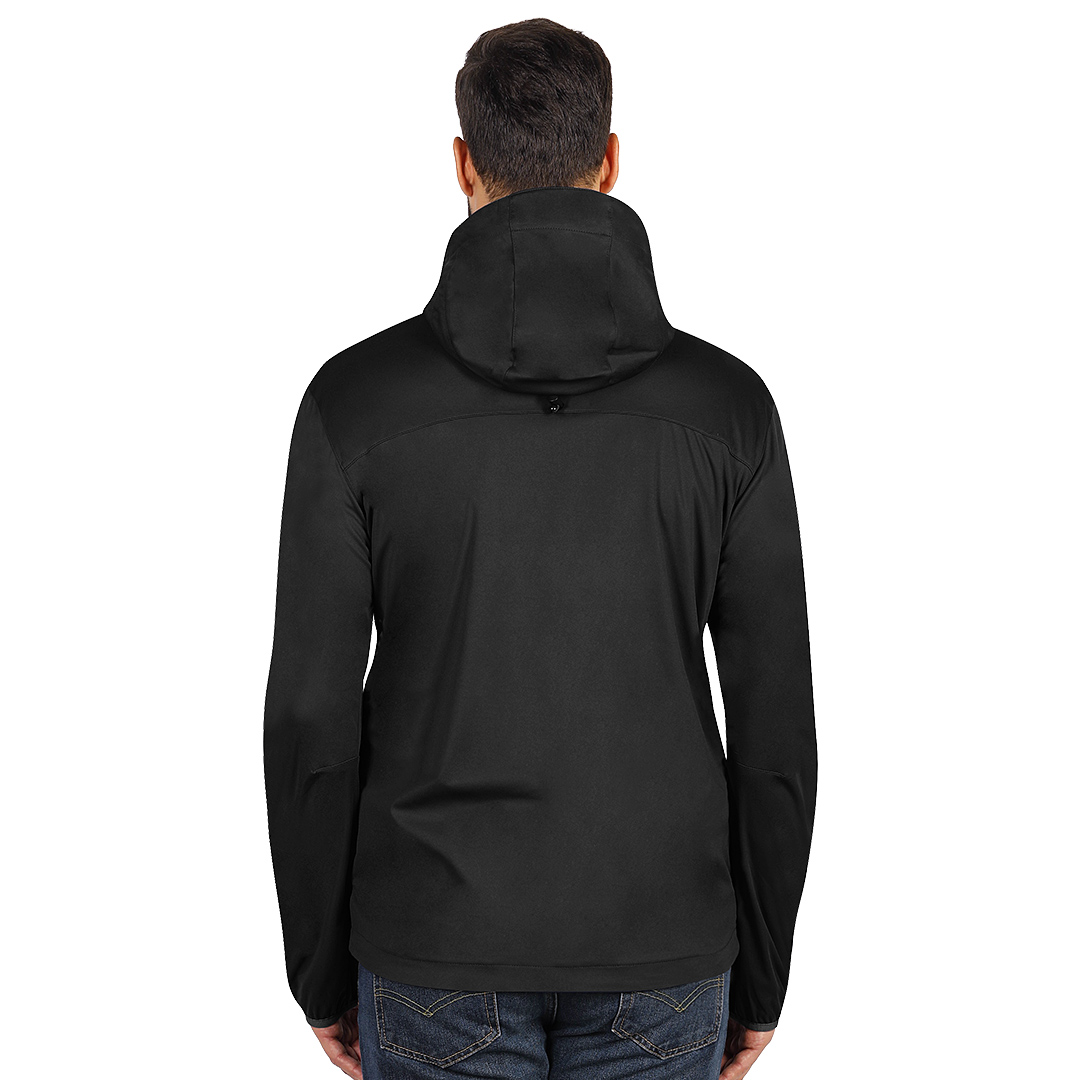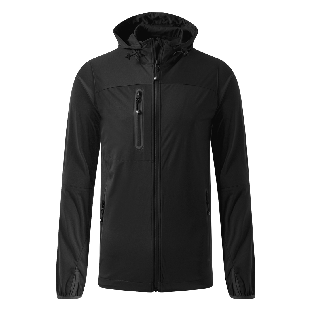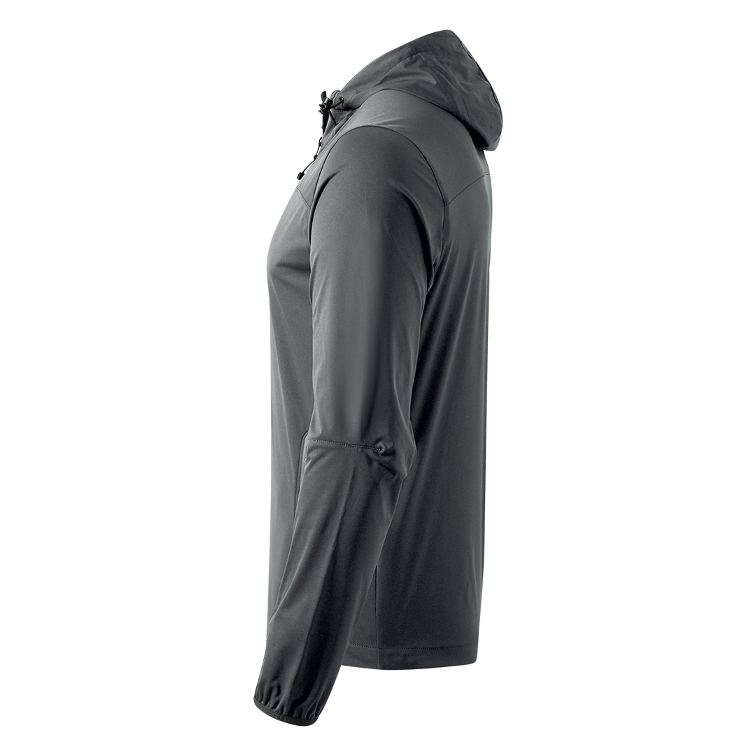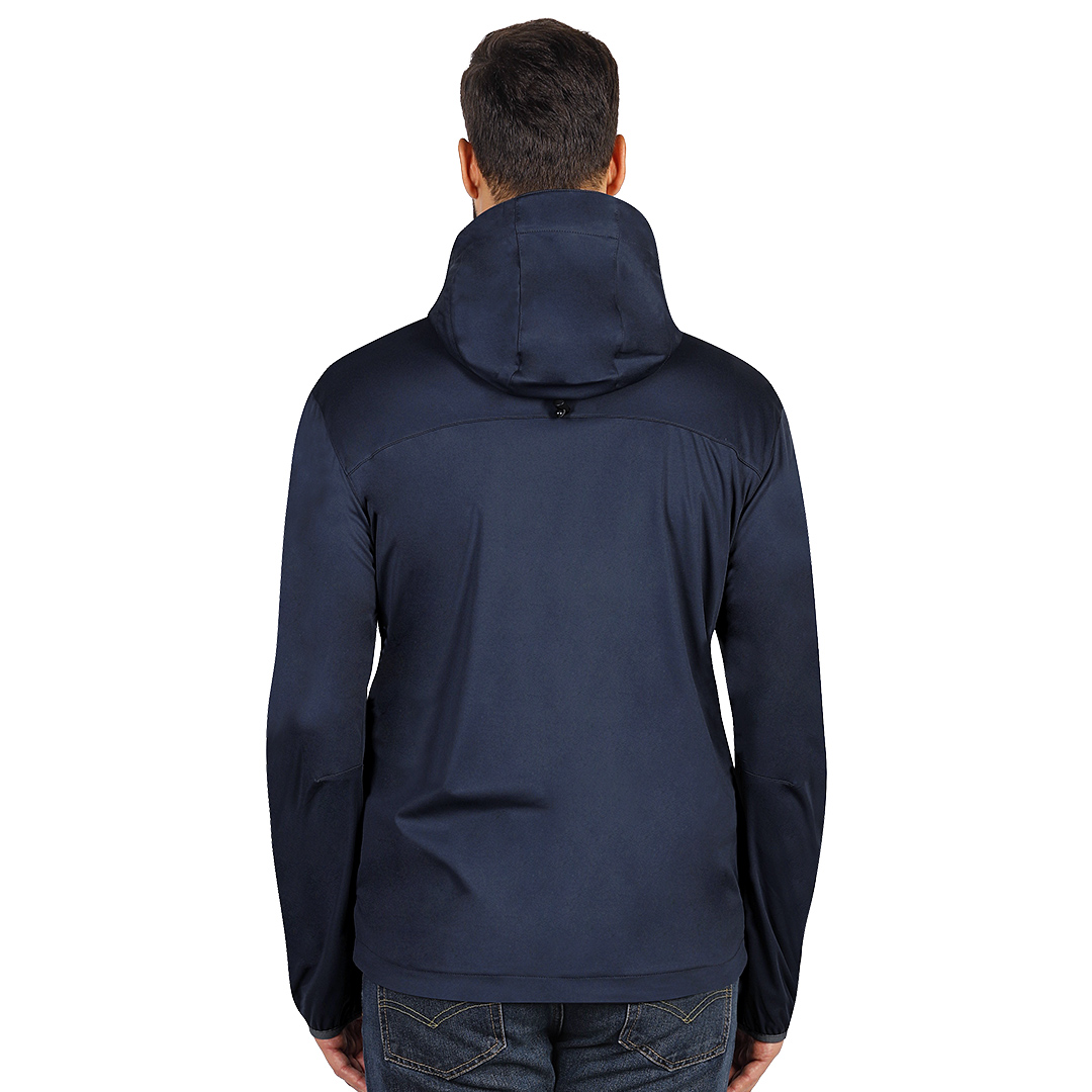 Jakna, elastični učkuri sa steznim regulatorima u kapuljači, dva prednja džepa sa rajsferšlusom i jedan džep na grudima, svi rajsferšlusi su vodootporni, otvor za palac na rukavima, zadnja strana duža od prednje