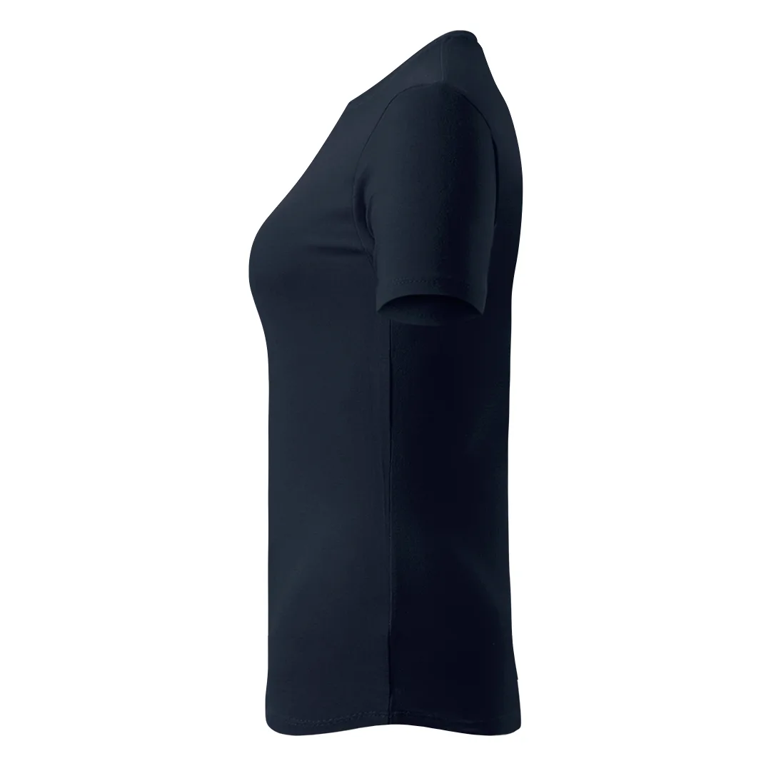 Ženska majica, 160 g/m2, blago strukirana, šivena sa strane, dupli štepovi na rukavima i dnu, štep oko rendera i dodatni štep duž ramena, okovratnik ojačan trakom