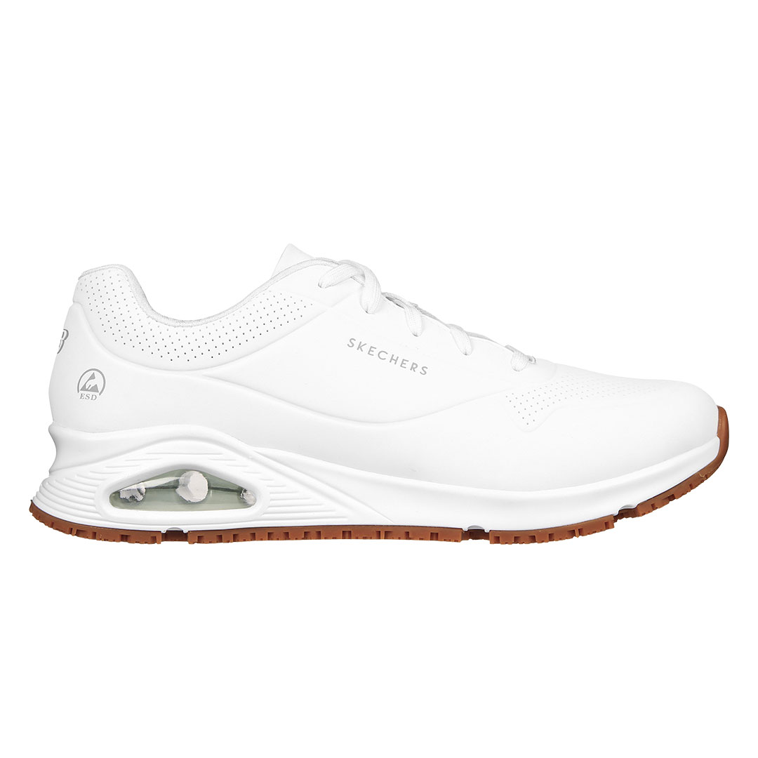 Skechers UNO SR su ženske plitke radne patike sa ESD funkcijom, namenjene radnim okruženjima u kojima nije potrebna zaštitna kapa, ali su stabilnost, protivklizna sigurnost i celodnevni komfor od ključnog značaja. Zahvaljujući potpuno nemetalnoj konstrukciji, model je pogodan i za rad u okruženjima sa detektorima metala i kontrolisanim bezbednosnim procedurama. Patike su sertifikovane prema standardu EN ISO 20347 i pripadaju klasi O1.