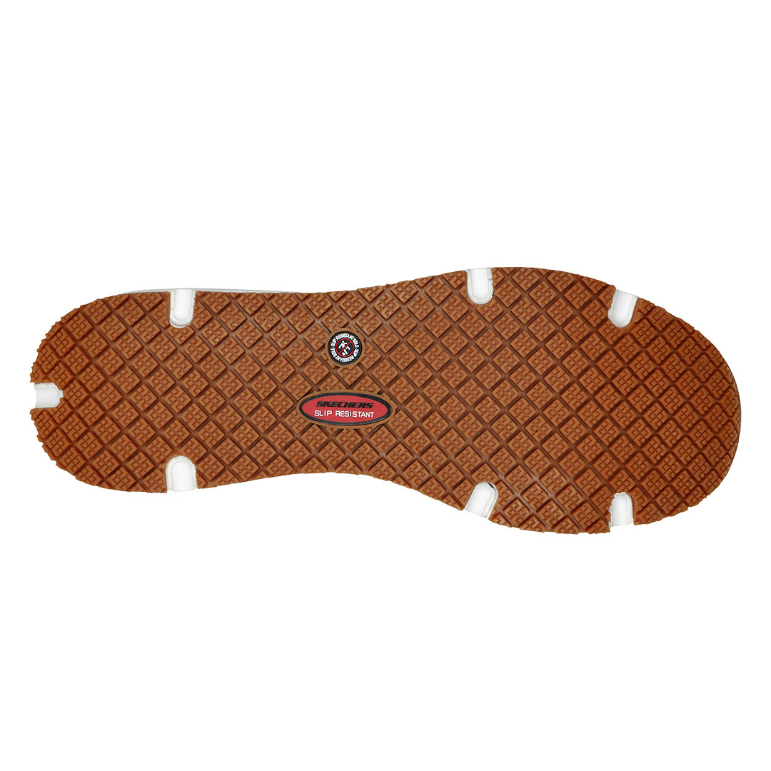 Ženske radne patike – plitki model • Nemetalna konstrukcija • Pogodne za objekte sa detektorima metala • Gornji materijal: veštački materijal sa perforacijom • Bez zaštitne kape • EN ISO 20347 – klasa O1 • Antistatička svojstva (ESD) • Protivklizni đon (SR) • Otpornost đona na ulje i goriva (FO) • Skechers uložak od memorijske pene • Međuđon sa vazdušnim jastučićem • Zatvorena peta • Brend: Skechers